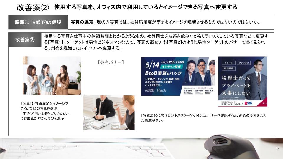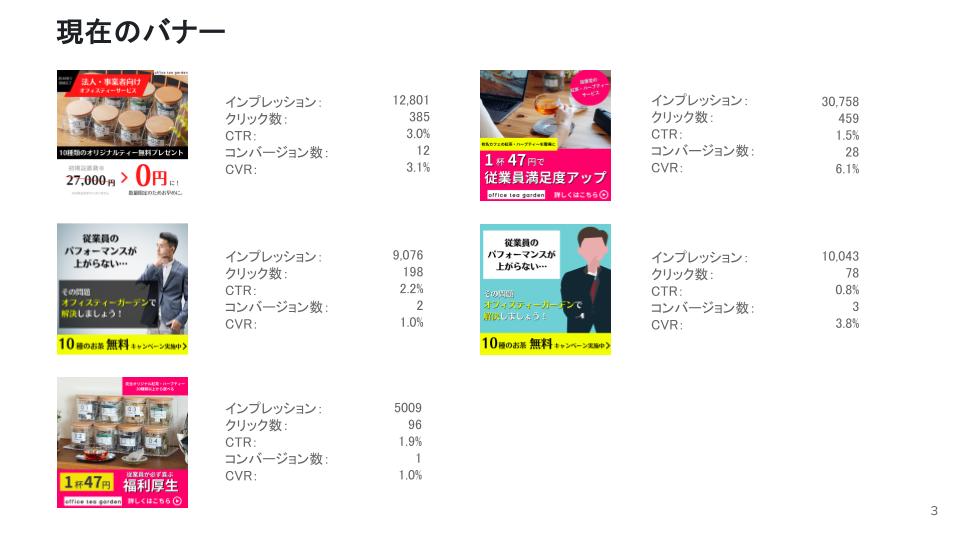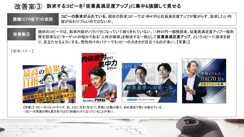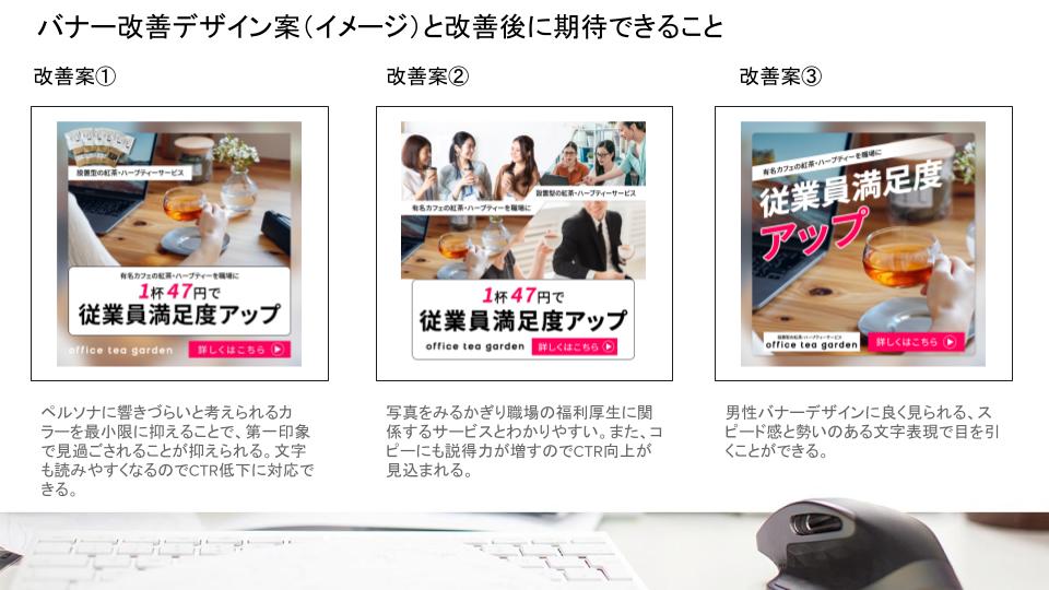 ですので、デザイン改善の観点から、同年代のビジネスマンに向けたバナーを集め、そのデザインの特徴をもとに改善案を考えました。