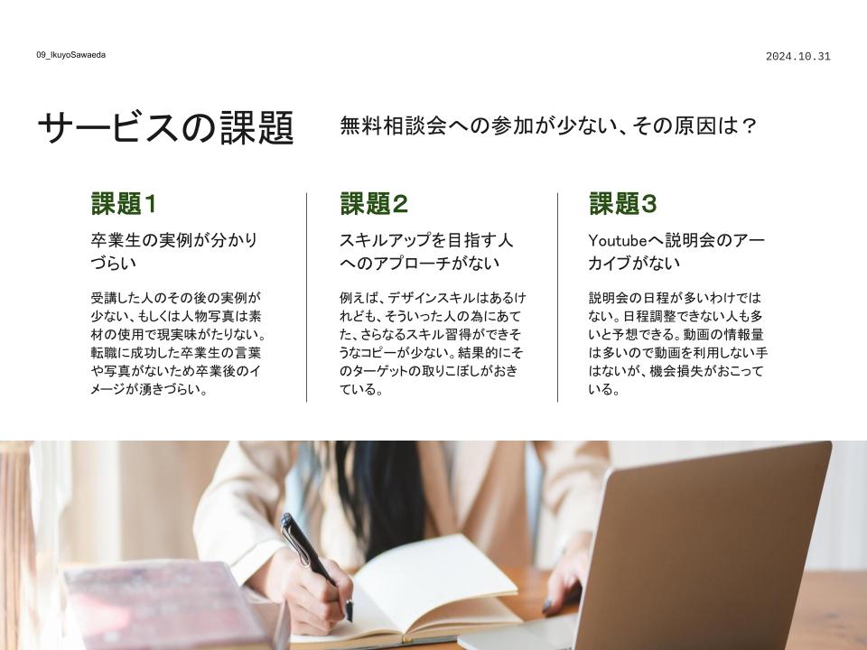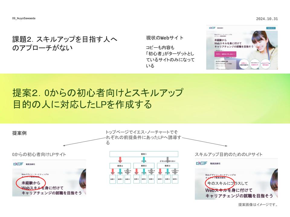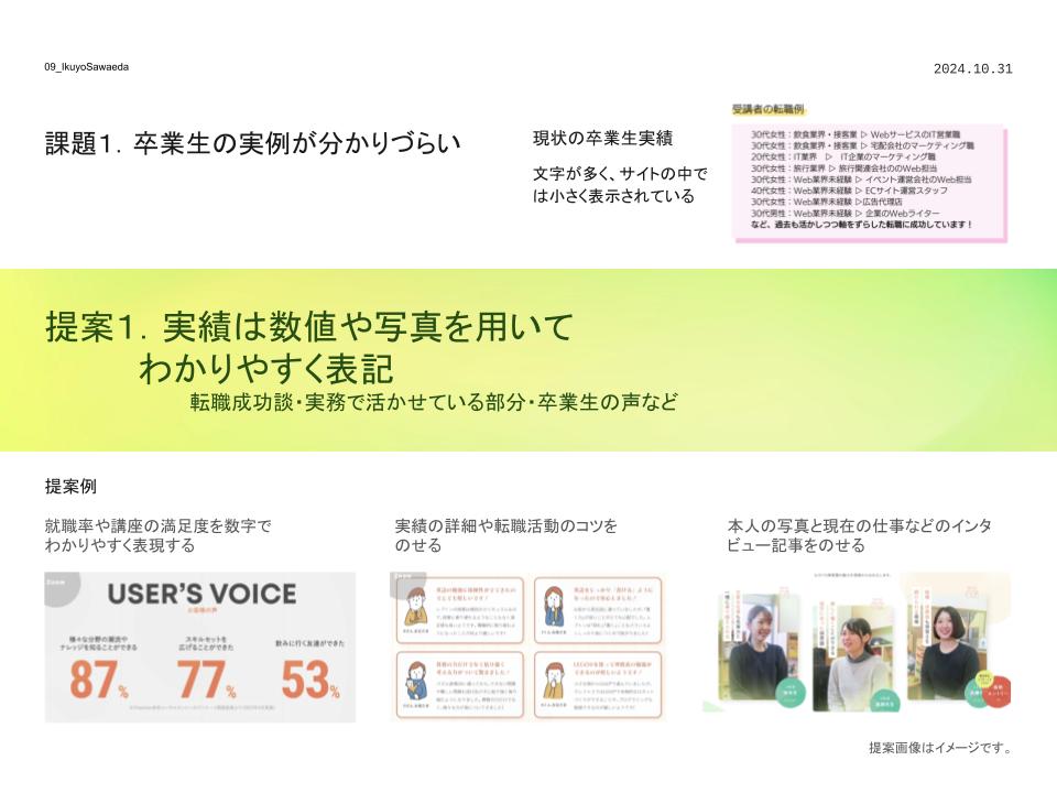 課題の評価では、「読ませる提案書」というより「見せる提案書」との評価を頂きました。