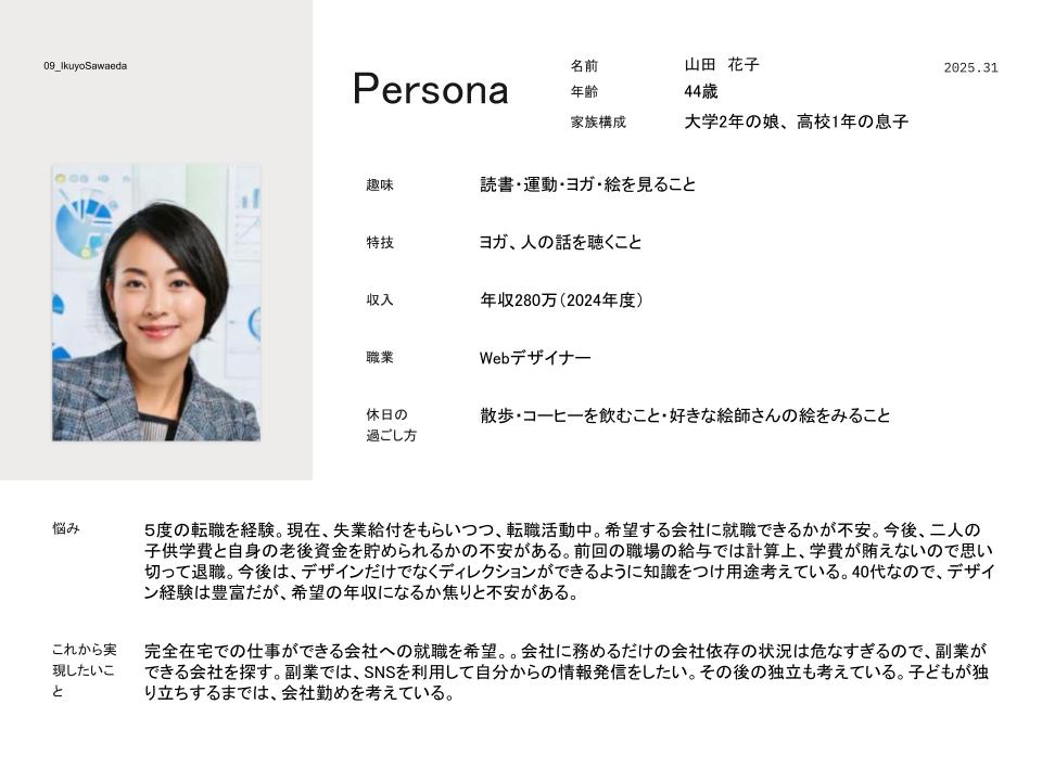 自身で設定したペルソナに沿った課題解決のための報告書となります。