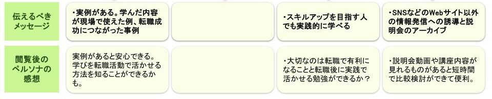 次に、ペルソナがどのような疑問や悩みを持つのかを仮説立て、それを解決する方法を提案する。