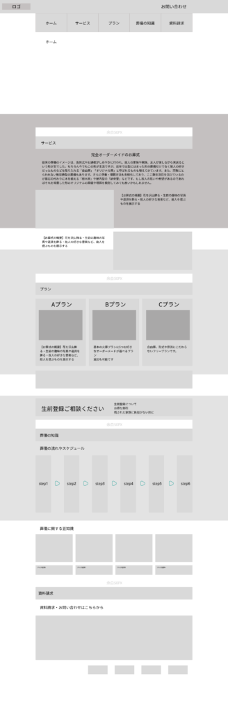 ワイヤーフレームをFigmaの練習を兼ねて作成しました。